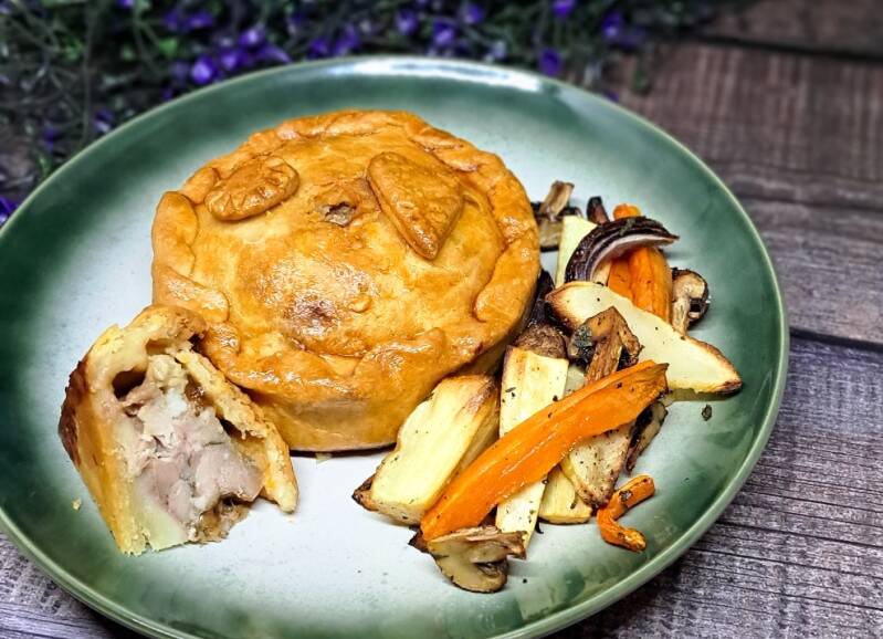 De pork pies maak je in ieder geval een dag van te voren. Bij het afkoelen krimpt het vlees een beetje, dat vul je op met een bouillon waar gelatine in gaat. Dat moet een nachtje opstijven. Je kan de pork pies zowel warm als koud serveren, wij vonden beiden erg lekker. Voor de traybake snij je gewoon de groenten en kruiden van te voren en dan bak je het terwijl jullie het voorgerecht eten. Als je warme pork pies wilt kun je die tegelijk in de oven zetten.