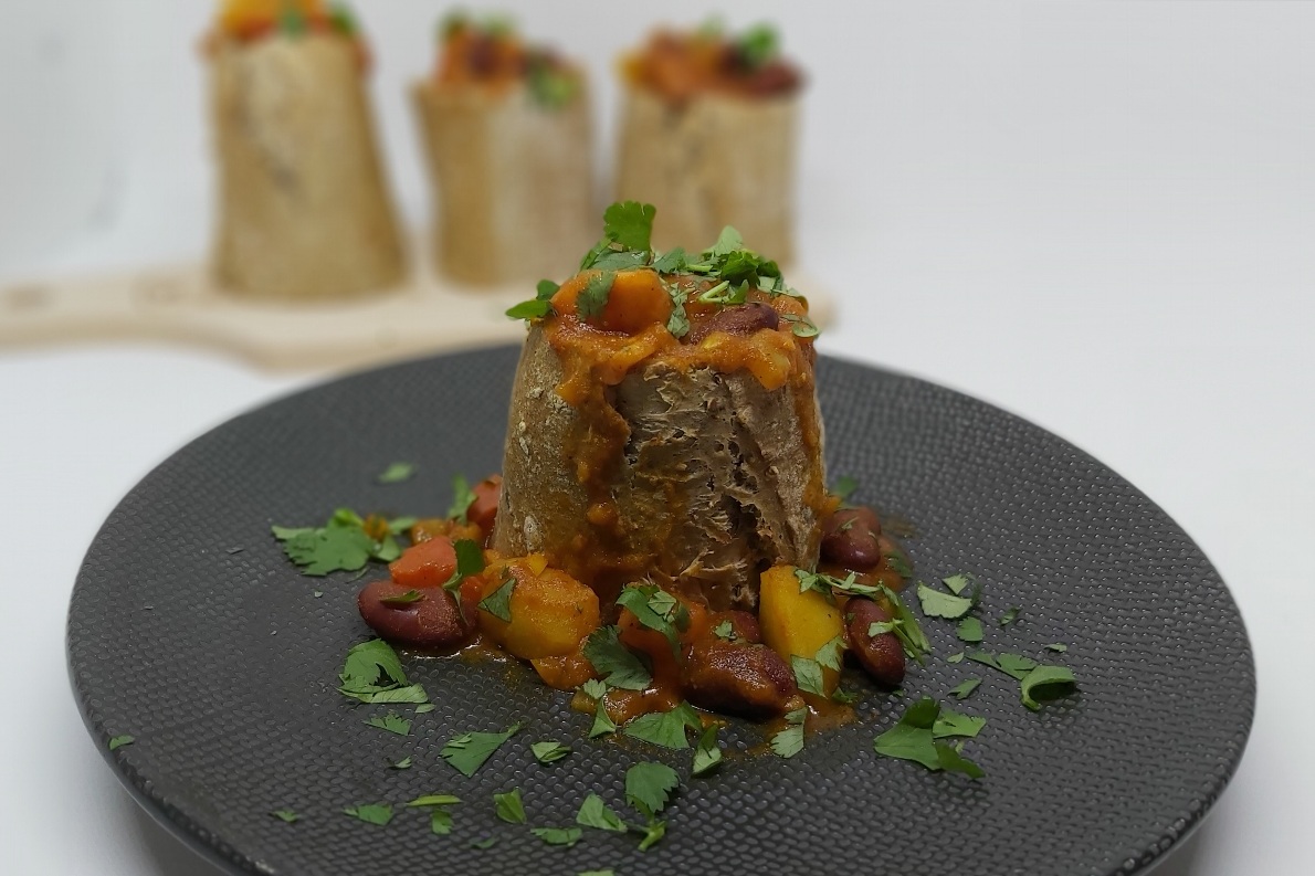 Dit menu had dus alleen nog een lekker voorgerecht nodig. Dat werd de bunny chow, een heerlijke bonencurry geserveerd in brood. De bunny chow is vegetarisch en ook de bobotie maak je makkelijk vegetarisch. Gewoon het gehakt vervangen voor een vegetarische variant. Op die manier kan je dit menu dus ook makkelijk aan vegetariërs serveren.