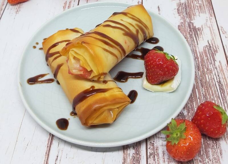 Brie loempia's met aardbeien en balsamico