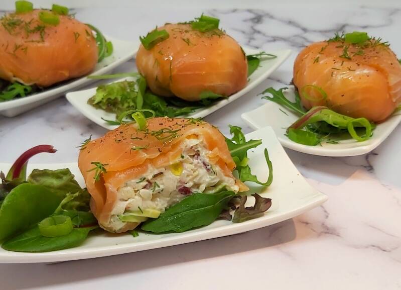 Zalmbonbons zijn makkelijk te maken. Eigenlijk hoef je niet eens te koken en je maakt ze ook nog van te voren klaar. Handig dus, maar ze zijn vooral erg lekker. Ik maakte redelijk grote bonbons met behulp van muffinvormpjes, je kan ook glaasjes gebruiken als vorm. In 1 zalmbonbon zitten slechts 7.04 koolhydraten, perfect gerechtje bij een koolhydraatarm dieet dus. Je kan met deze ingrediënten ook een lekkere KHA salade maken.
