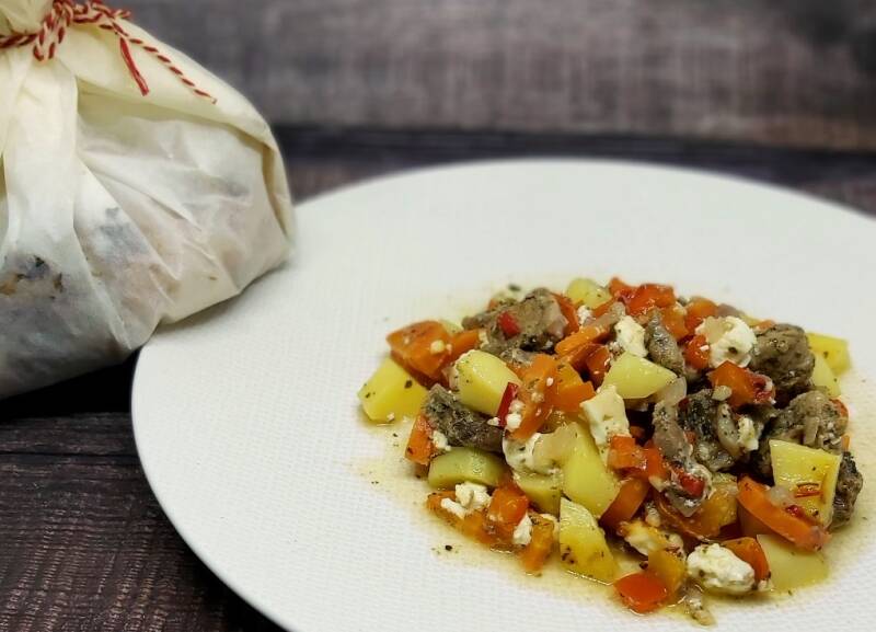 Een heerlijk krokant deeg, gevuld met mals stoofvlees en rijst. Je kan 1 soort vlees gebruiken, maar meestal worden er verschillende soorten vlees gebruikt. Want iedere soort vlees voegt zijn eigen smaak toe, dus meerdere soorten vlees betekent meer smaak. Aangezien het op dit eiland barst van de geiten (die soms ineens met hele kuddes over de weg rennen!), koos ik voor geitenstoofvlees. Ik combineerde het met sukadelapjes, maar je kan bijvoorbeeld ook lamsvlees of varkensvlees kiezen. Zorg in ieder geval dat je goed stoofvlees gebruikt, dat flink wat vet heeft. Want ook dat zorgt voor smaak.