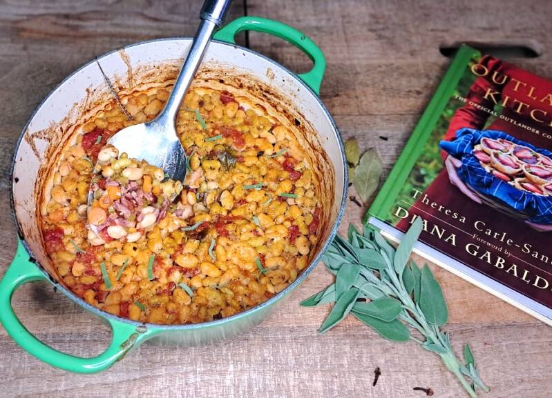 Ik maakte dit gerecht als onderdeel van het Outlander menu op basis van het kookboek 'Outlander Kitchen', maar koos wel voor iets makkelijkere en snelle variant met wat minder vlees (omdat ik 450 gram p.p. wat veel vond). In dit recept gebruik je varkensworst, gerookte spekreepjes en kipdijfilet. Vaak wordt er ook gekonfijte eendenbout gebruikt, dat geeft nog heel veel extra smaak en ga ik zeker nog een keer proberen. (tip: bij Crisp kan je vaak gekonfijte eendenbout bestellen)