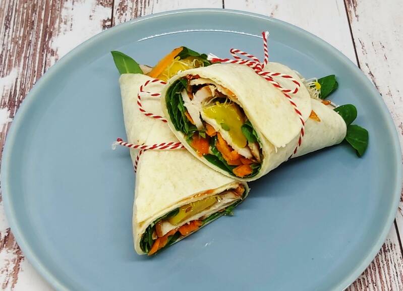 - Rol de wraps op en bind vast of steek er een satéprikkertje in.