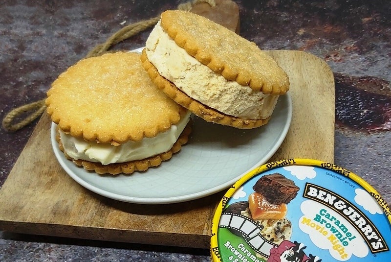 Ik heb een megalekker en supersimpel toetje voor je. Het is geen recept te noemen, want je hoeft eigenlijk nauwelijks iets te doen. Maar ik denk wel dat je iedereen blij maakt met dit toetje. Je gebruikt gewoon jouw favoriete Ben & Jerry's smaak en koopt koekjes van ongeveer dezelfde doorsnee als het ijs.