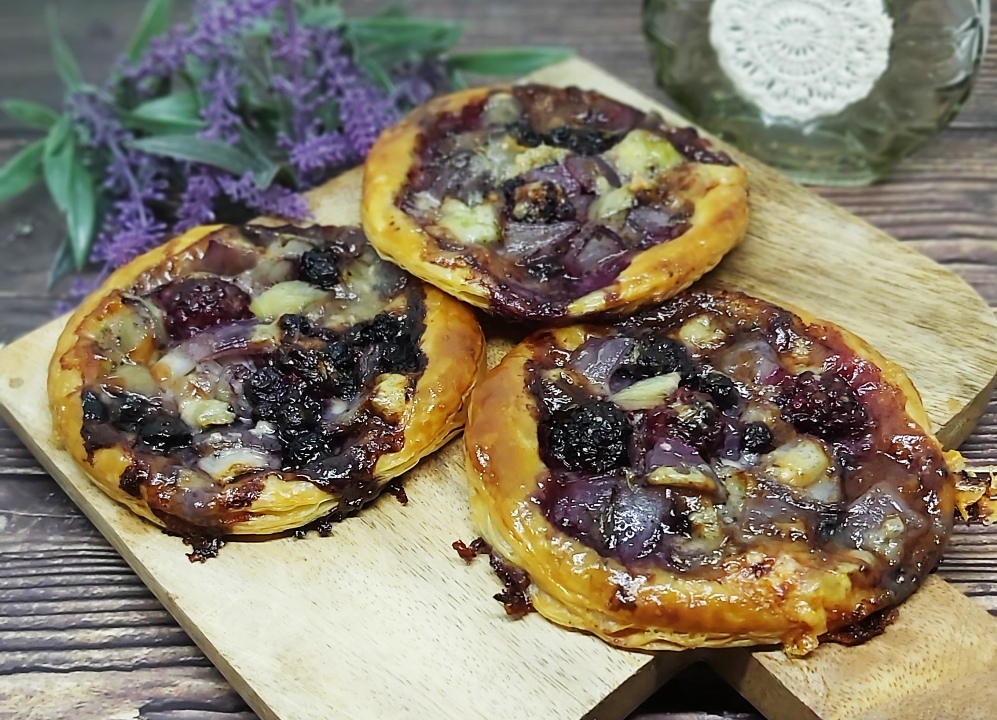 Deze taartjes zijn een heerlijk voorgerechtje tijdens een uitgebreid etentje. Heerlijk crunchy bladerdeeg met daarop een smaakbommetje van ui, bramen, blauwe bessen en gorgonzola. En je hoeft gelukkig geen masterchef te zijn om ze te maken.