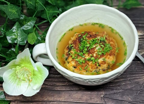 - Leg iedere dumpling in een soepkom, giet de bouillon erbij en garneer met bieslook. Serveer direct.