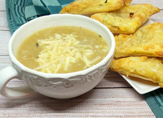 Zo maak je de uiensoep met kaas-tomaatflappen