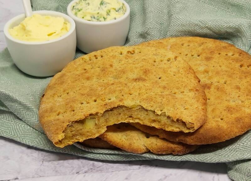 Deze Finse platbroodjes worden gemaakt van aardappel. Daardoor blijven ze een beetje smeuïg van binnen. Doordat ze op hoge temperatuur gebakken worden is de buitenkant wel lekker knapperig. Ik serveerde de broodjes met een homemade kruidenboter en een boter met gerookt zout. Beiden erg lekker bij dit brood!